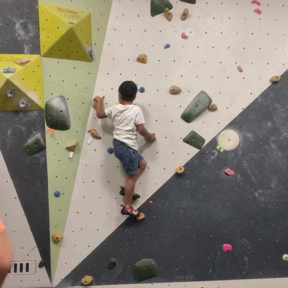 Erste Einführung an der Boulderwand.