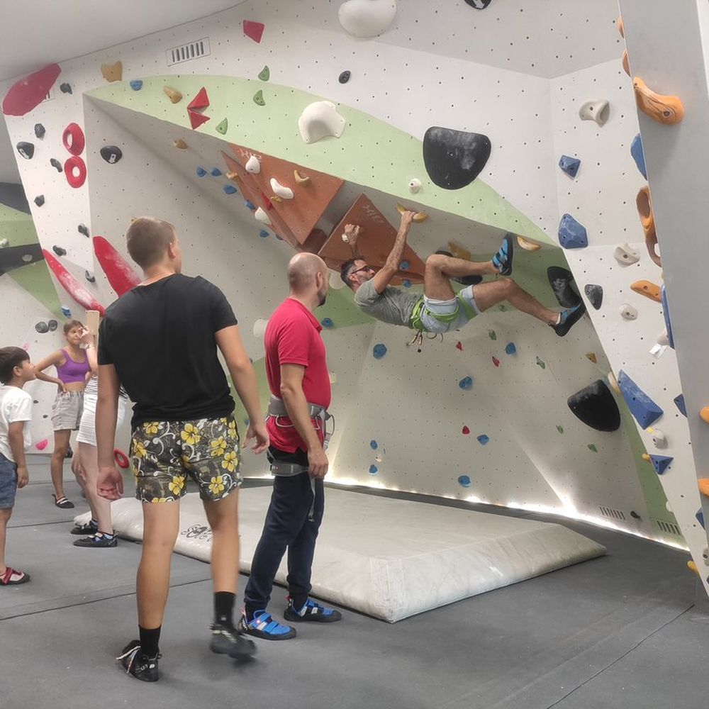 Das Angebot wurde dankbar von einigen ukrainischen Flüchtlingen aus der Mettnauhalle angenommen. Es war eine bunt-gemischte Gruppe aus Kindern, Jugendlichen und Erwachsenen. Einige mit vorheriger Klettererfahrung und für andere war es das erste Mal. Alle waren allerdings top motiviert und sind fleißig die Wände hoch und runter geklettert.